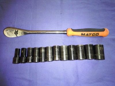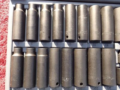 Mac 1/2” drive deep well impact socket set 1 1/4” to 7/16”, Matco 1/2” drive socket set with 5 different style ratchets - shallow and deep - well sockets with swivel - all in case, Sunex 3/8” drive, deep impact socket set - standard and metric - 15/16” to ... Access Content